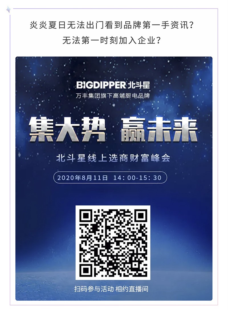 北斗星集成灶線上選商財富峰會將盛大開啟!