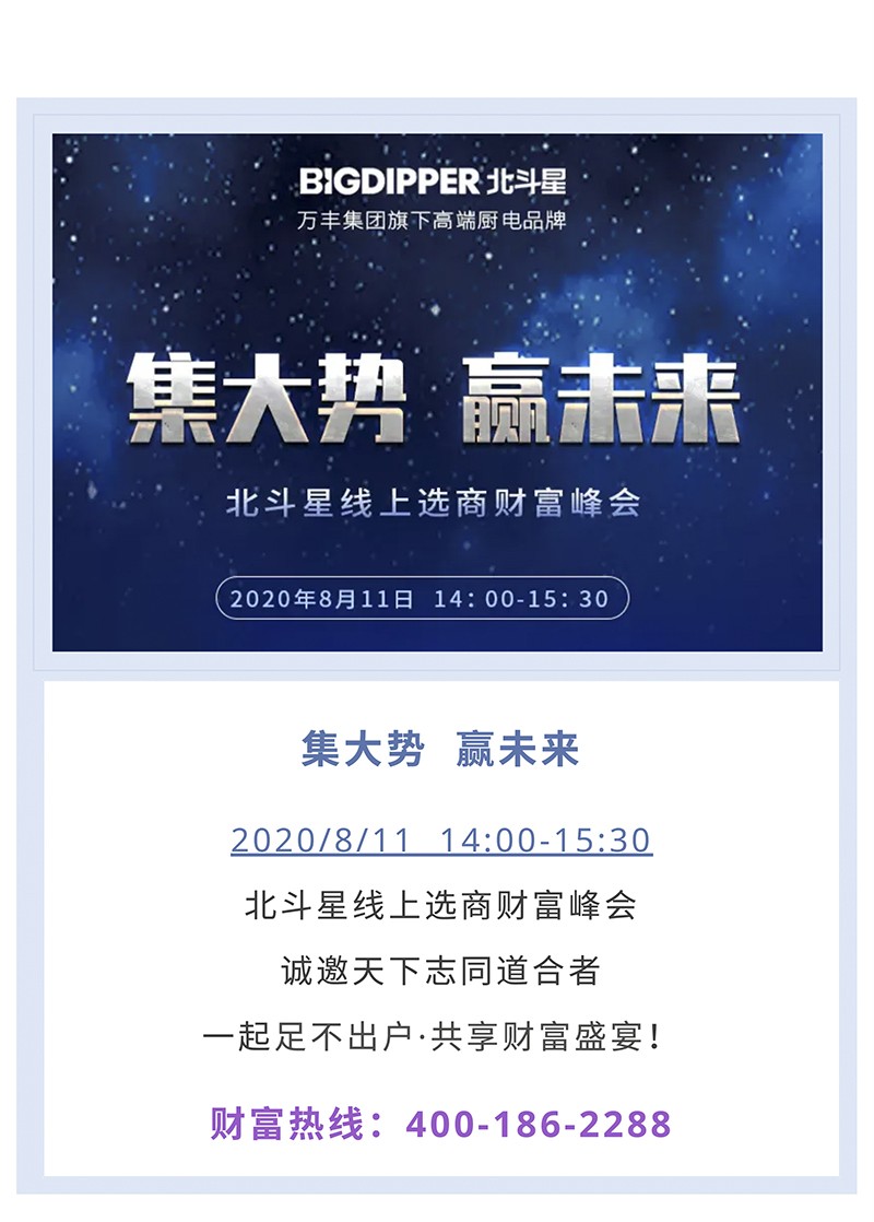 北斗星集成灶線上選商財富峰會即將盛大開啟